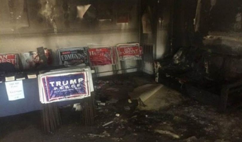 Kandidati i republikanëve për president amerikan Donald Tramp, ka akuzuar rivalen e tij, Hillary Klinton për djegien e zyrës në Karolinën Veriore.