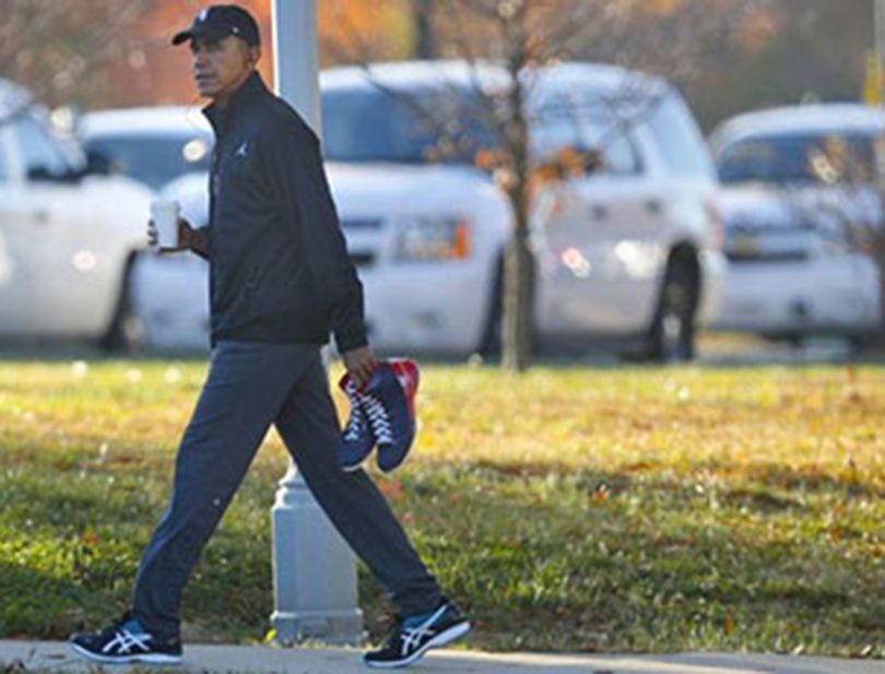 Me një kapelë sportive, atletet në duar dhe një filxhan kafeje, presidenti i parë me ngjyrë në historinë e SHBA-ve është fotografuar paraditen e kësaj të marte në “Fort McNair”, një bazë ushtarake në periferi të Uashingtonit, pikërisht përpara ndeshjes që do të zhvillonte me miqtë e tij.
