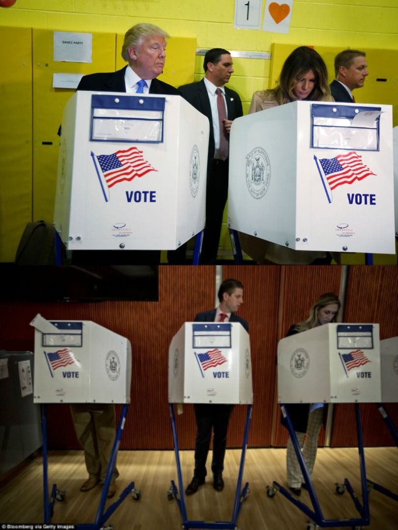 “As që i kam parë fletëvotimet e tyre”, ka thënë Trump duke qeshur. “Nuk e kam ditur se bashkëshorti im po më kontrollonte por mund të them se unë dhe Melania votuam për Donald Trumpin për president të SHBA-ve”.