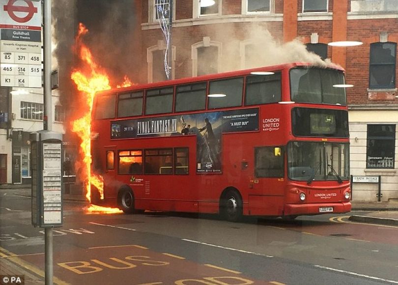 Tymi filloi të dalë nga autobusi në qendër të Kingstonit, në jugperëndim të Londrës. Daily Mail raporton se në autobusin që kishte 300 litra naftë, kishte pasagjerë, të cilët janë larguar menjëherë.