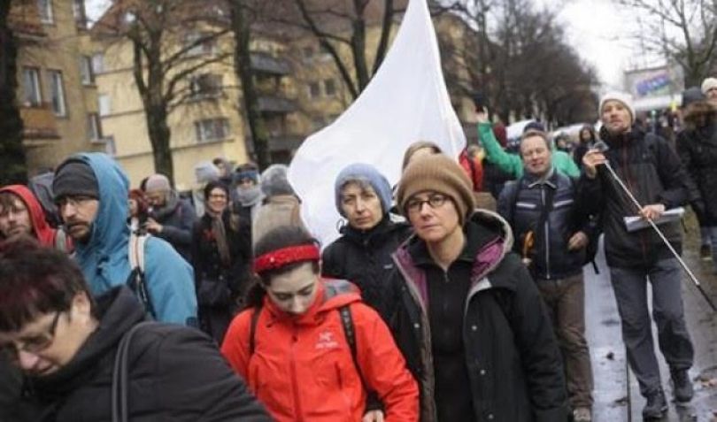 Marshi për Halepin, ku pjesëmarrësit mbanin flamuj të bardhë ka filluar në ish-aeroportin e Berlinit-Tempelhof.