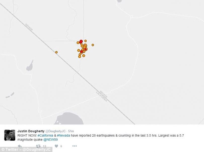 Sipas hulumtimeve të zyrtarëve gjeologjikë të SHBA, dy tërmete me magnitudë 5.7 që kanë goditur, kanë qenë me qendër në kufirin e Nevadas me Kaliforninë, rreth 130 kilometra në juglindje të liqenit Tahoe.