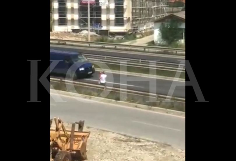 Në mungesë të një mbi ose nënkalimi në atë zonë, një grua me një fëmijë të vogël në krah kalon rrugën në mes të magjistrales duke kapërcyer mbi mbrojtëset e rrugës, transmeton Koha.net. Mbikalimi më i afërt nga kjo zonë është ai i Çagllavicës.