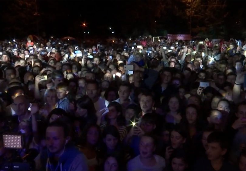 Qendra e qytetit, ishte e stërmbushur, derisa pa ndërpre thirrej emri i Majlindës e Dritonit, ndërsa ata priteshin të vinin në skenën e ngritur nga komuna e Pejës në nderim të tyre.