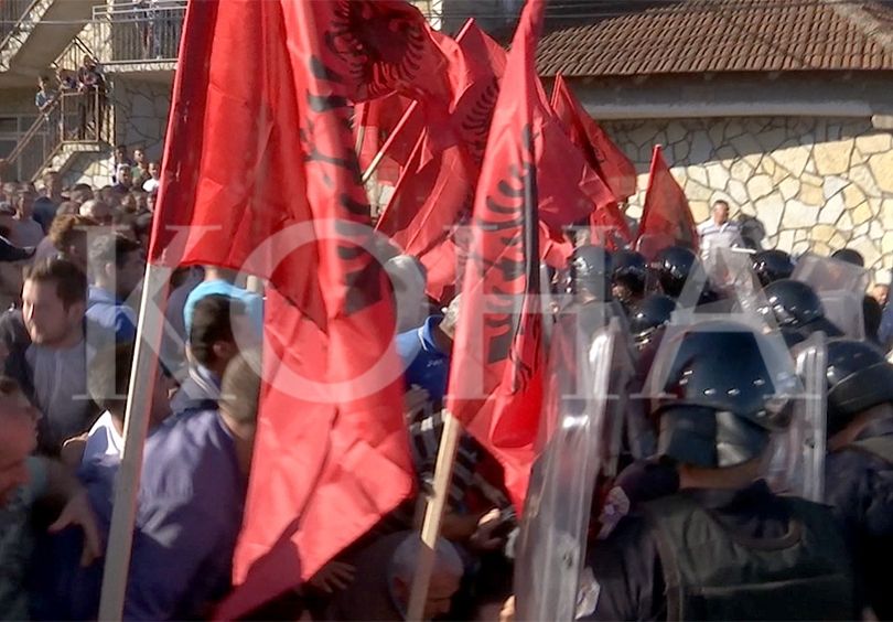 Policia u gjuajt me gurë e shishe qelqi, gjë që detyroi ata të arrestojnë disa nga protestuesit. Policia më në fund arriti ta lirojë njërën korsi të rrugës, por kjo nuk mjaftoi që serbët të vinin për vizitë, ashtu siç ishte paraparë.
