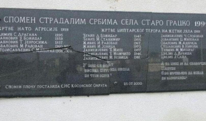 Persona të pazbuluar deri më tani e dëmtuan pllakën përkujtimore për të vrarët në Grackë të Vjetër (Staro Gracko) dhe me të drejtë nxitën reagime të opinionit.