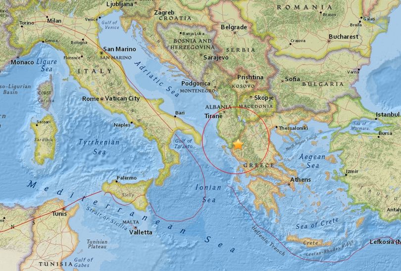 Epiqendra e tërmetit ka qenë pranë kufirit me Greqinë.