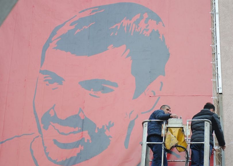 Portreti i Deharit përcillet nga shënimi: Drejtësi për Astritin, dhe është realizuar me dy ngjyrat e flamurit Kombëtar, kuq e zi.
