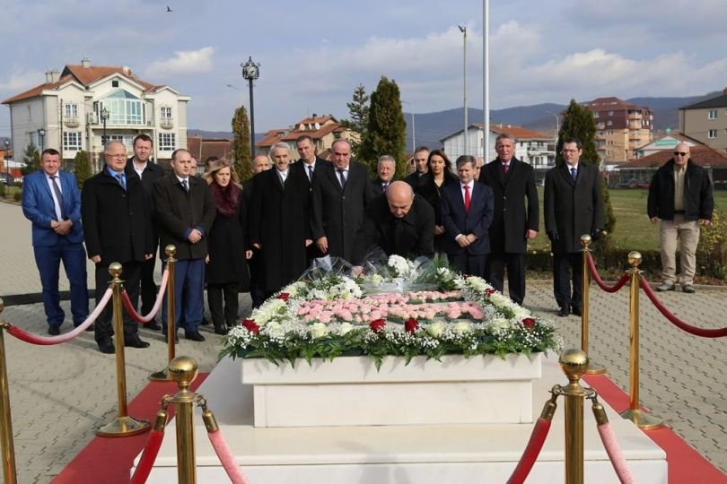 “Si themelues i shtetit të Kosovës dhe arkitekt i pavarësisë, Ibrahim Rugova u bë simbol i rezistencës së qytetarëve të Kosovës, duke pasur përkrahjen e të gjithë popullit të Kosovës, elitës intelektuale, patriotëve dhe të botës demokratike perëndimore”, shtoi Mustafa, që më tej foli edhe për përkushtimin e Qeverisë së Kosovës.