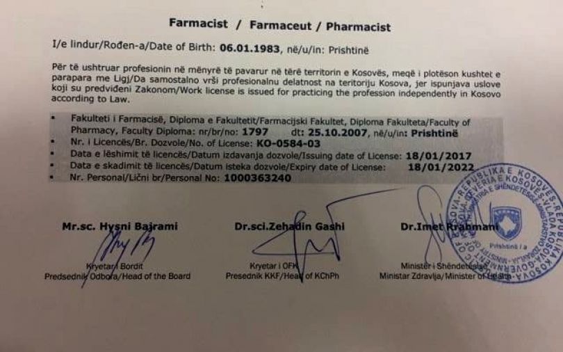 Nënshkrimi i licencave krahas ministrit dhe kryetarit të bordit për licencim të profesionistëve shëndetësor edhe nga kryetari i Odës së Farmacistëve tregon se MSh-së është e përkushtuar për implementimin e Ligjit për Odat e profesionistëve Shëndetësor dhe bartjen graduale të përgjegjësive të tjera te odat, krahas përgjegjësive për çështje etike dhe Edukim të Vazhduar Mjekësor.