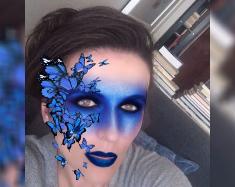 Ajo ka bërë një selfie, të inkorporuar me një filtër që zonën rreth syve të saj i ka rrethuar me të kaltër, ndërsa në anën e djathtë të saj ka plot flutura, transmeton Koha.net.