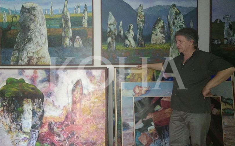 Ngjyra, forma, stile e madhësi të ndryshme të ekspozuara gjithandej përthekojnë karrierën 50-vjeçare të piktorit. Nuk e di numrin e saktë, por thotë se ka rreth 1 mijë sosh. Prandaj qilimat e shtrirë në dysheme janë të vetmit që mundësojnë shkeljen në gjithë hapësirën... (më gjerësisht lexoni sot në “E Diela me Koha Ditore”)