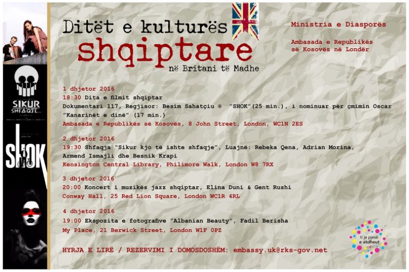 Ndër të tjera, pjesë e këtij aktiviteti janë edhe ekspozita e fotografive të fotografit të mirënjohur shqiptar Fadil Berisha, me titull “Albanian Beauty”, shfaqja e aktorëve shqiptarë nga Kosova “Sikur kjo të ishte shfaqje”, filma të metrazhit të shkurtër, duke përfshirë edhe filmin e nominuar për OSCAR “SHOK”, si dhe një koncert i xhazkëngëtares Elina Duni.