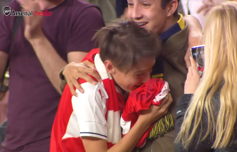 Arsenali ka postuar një video në Facebook të momentit të Ozil duke i dhënë fanellën fansit, i cili gëzohet tej mase.