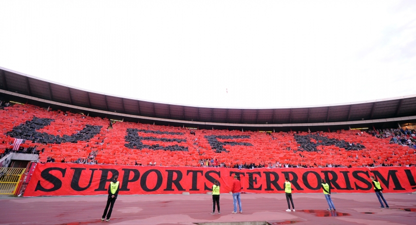 Arsye për këtë është dënimi që Federata serbe ditë më parë ia kishte shqiptuar Zvezdës, për shkak të transparentit që tifozët e saj e kishin shpalosur kundër UEFA-s dhe Kosovës. Në transparentin që u zbulua në ndeshjen ndaj Spartakut ditë më parë, shkruante "UEFA përkrah terrorizmin", duke aluduar në përkrahjen që UEFA i ka dhënë Kosovës.