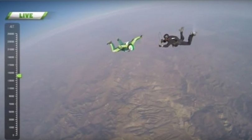 Kështu Aikins (42 vjeçar) u bë njeriu i parë i cili nga një lartësi e tillë ka kërcyer nga avioni pa parashutë, shkruan The Guardian, transmeton Koha.net.
