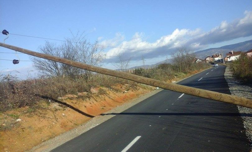 Automjetet që po kalojnë aty po hasin në vështirësi pasi u nevojitet të përbirohen në njërën korsi, ku nuk u prek automjeti me shtyllat, apo përçuesit, transmeton TherandaPost.